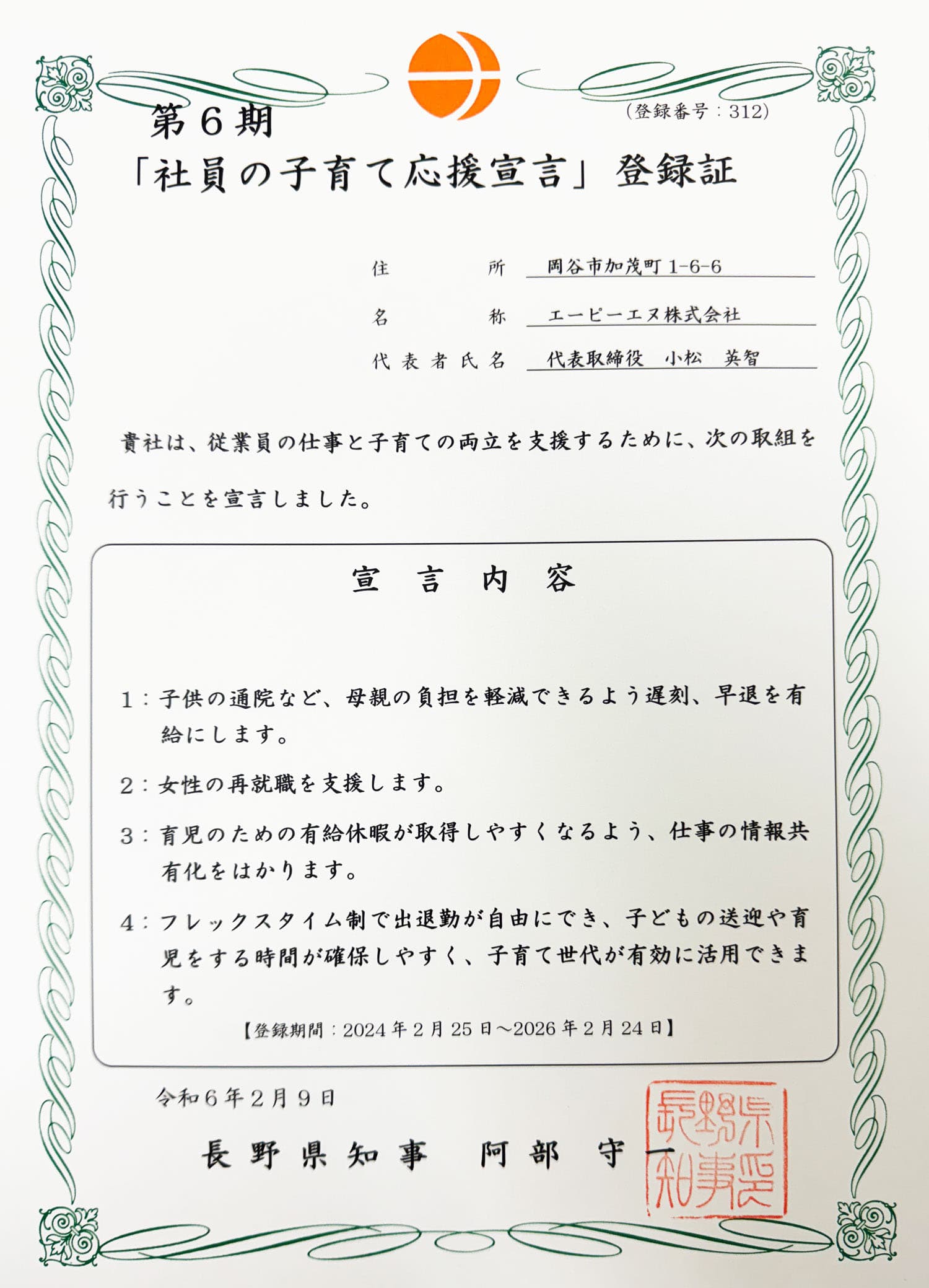 | 令和2年4月 | 長野県SDGs推進企業に登録 |